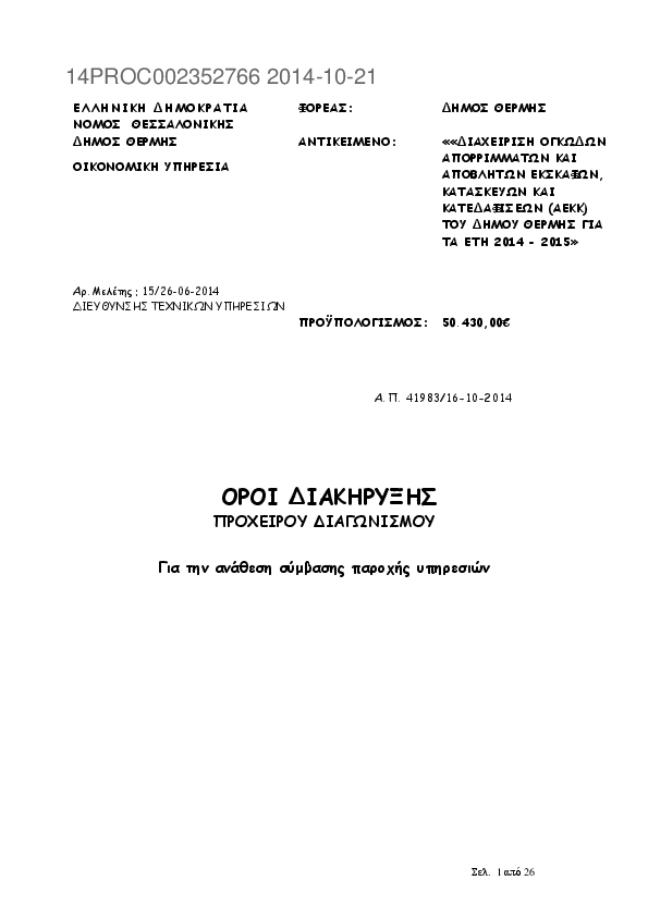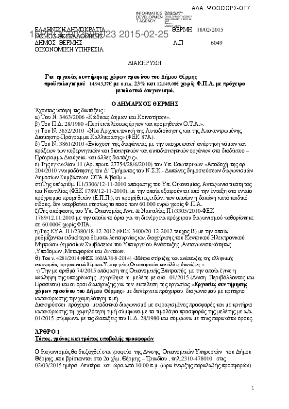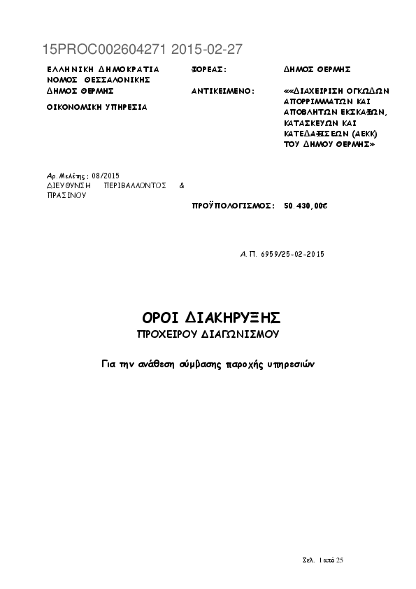Αναζήτηση σε προκηρύξεις και συμβάσεις για: