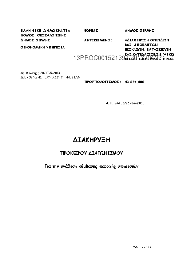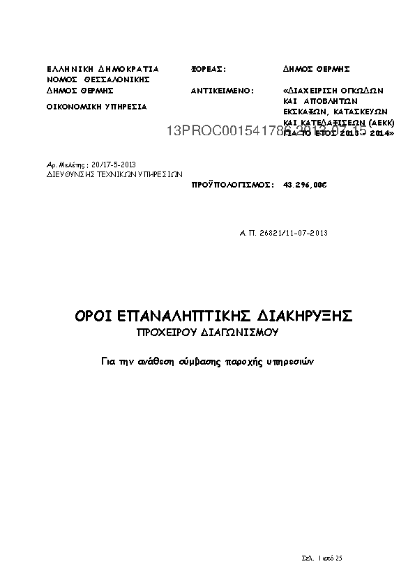 6. ''ΟΡΟΙ ΔΙΑΚΗΡΥΞΗΣ'' ΔΙΑΧΕΙΡΙΣΗ ΟΓΚΩΔΩΝ ΚΑΙ ΑΠΟΒΛΗΤΩΝ ΕΚΣΚΑΦΩΝ, ΚΑΤΑΣΚΕΥΩΝ ΚΑΙ ΚΑΤΕΔΑΦΙΣΕΩΝ (ΑΕΚΚ) ΓΙΑ ΤΟ ΕΤΟΣ 2013