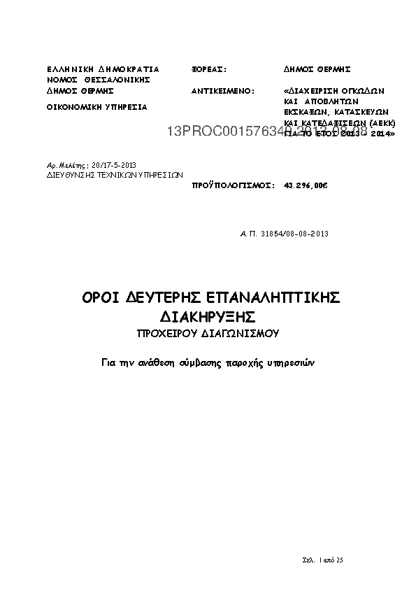 4. ΟΡΟΙ ΔΙΑΚΗΡΥΞΗΣ ''ΔΙΑΧΕΙΡΙΣΗ ΟΓΚΩΔΩΝ ΚΑΙ ΑΠΟΒΛΗΤΩΝ ΕΚΣΚΑΦΩΝ, ΚΑΤΑΣΚΕΥΩΝ ΚΑΙ ΚΑΤΕΔΑΦΙΣΕΩΝ (ΑΕΚΚ) ΓΙΑ ΤΟ ΕΤΟΣ 2013