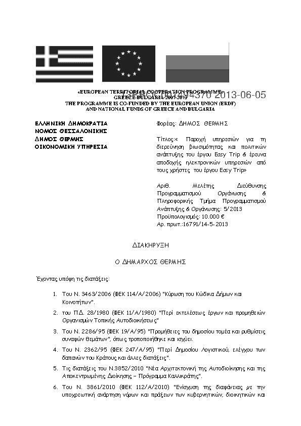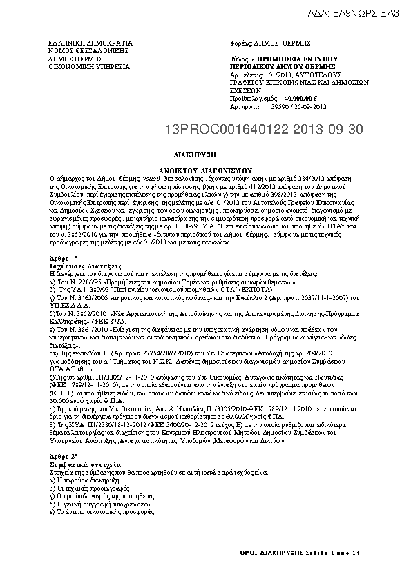 3. ΔΙΑΚΗΡΥΞΗ ΓΙΑ ΤΗΝ ΠΡΟΜΗΘΕΙΑ ΕΝΤΥΠΟΥ ΠΕΡΙΟΔΙΚΟΥ ΤΟΥ ΔΗΜΟΥ ΘΕΡΜΗΣ