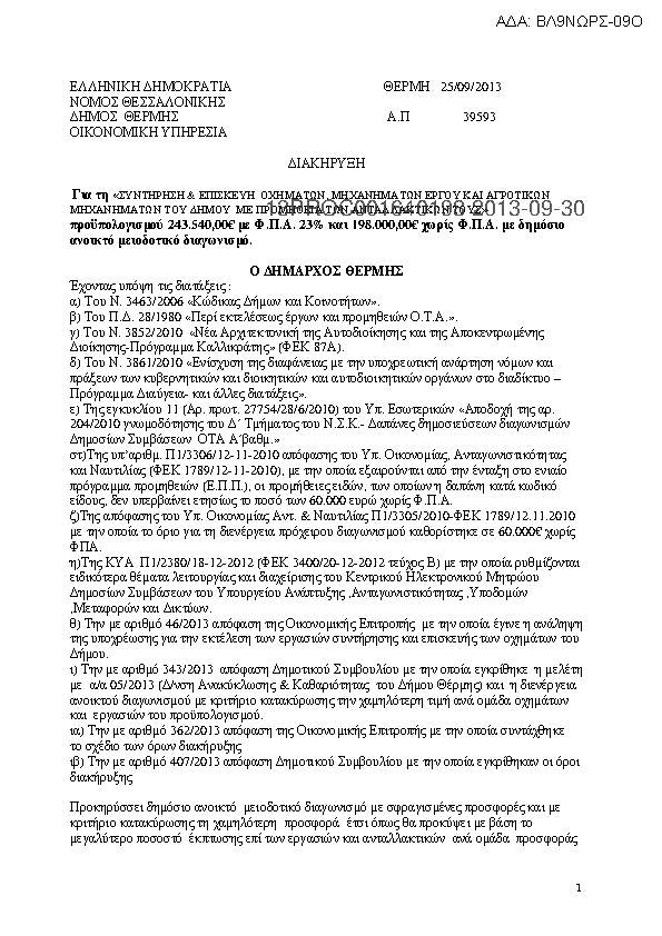2. ΔΙΑΚΗΡΥΞΗ ΓΙΑ ΤΗΝ ΣΥΝΤΗΡΗΣΗ & ΕΠΙΣΚΕΥΗ ΟΧΗΜΑΤΩΝ, ΜΗΧΑΝΗΜΑΤΩΝ ΕΡΓΟΥ ΚΑΙ ΑΓΡΟΤΙΚΩΝ ΜΗΧΑΝΗΜΑΤΩΝ ΤΟΥ ΔΗΜΟΥ ΜΕ ΠΡΟΜΗΘΕΙΑ ΤΩΝ ΑΝΤΑΛΛΑΚΤΙΚΩΝ ΤΟΥΣ