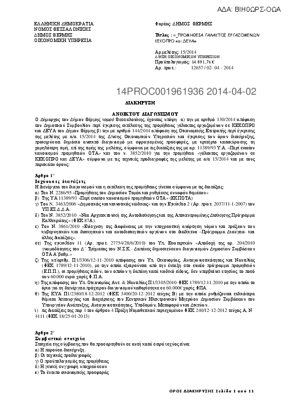 10. ΔΙΑΚΗΡΥΞΗ ΓΙΑ ΤΗΝ ΠΡΟΜΗΘΕΙΑ ΓΑΛΑΚΤΟΣ ΕΡΓΑΖΟΜΕΝΩΝ ΚΕΚΟΠΡΟ και ΔΕΥΑ