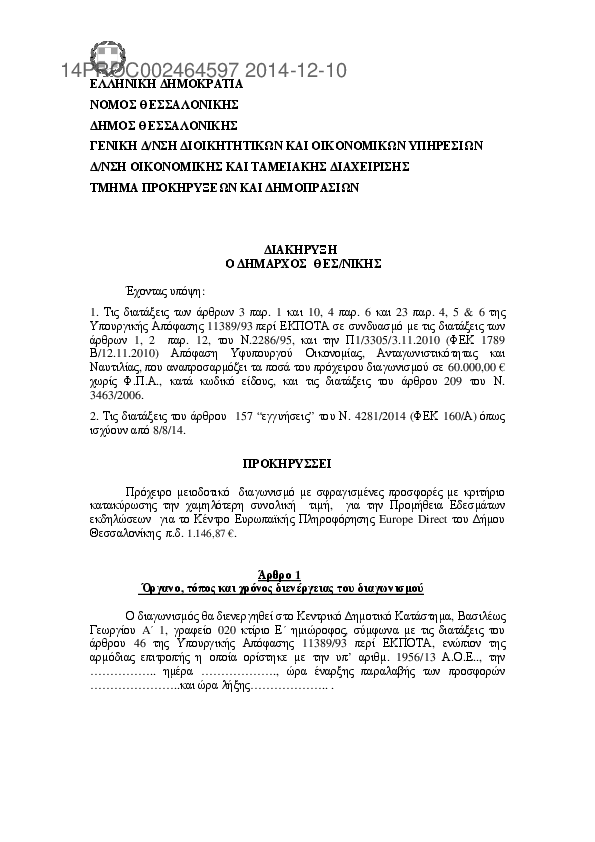 Αναζήτηση σε προκηρύξεις και συμβάσεις για: