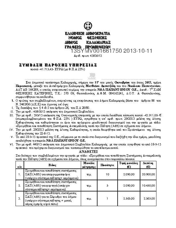 9. «Προμήθεια και τοποθέτηση Συστήματος Αντιεμπλοκής κατά την Πέδηση (ABS) σε οχήματα του Δήμου».