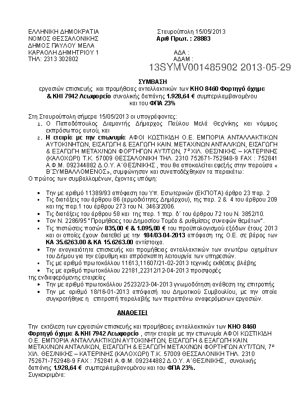 7. ΣΥΜΒΑΣΗ εργασιών επισκευής και προμήθειας ανταλλακτικών των ΚΗΟ 8460 Φορτηγό όχημα & ΚΗΙ 7942 Λεωφορ