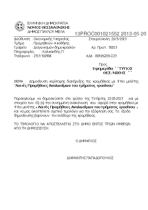 Αναζήτηση σε προκηρύξεις και συμβάσεις για: