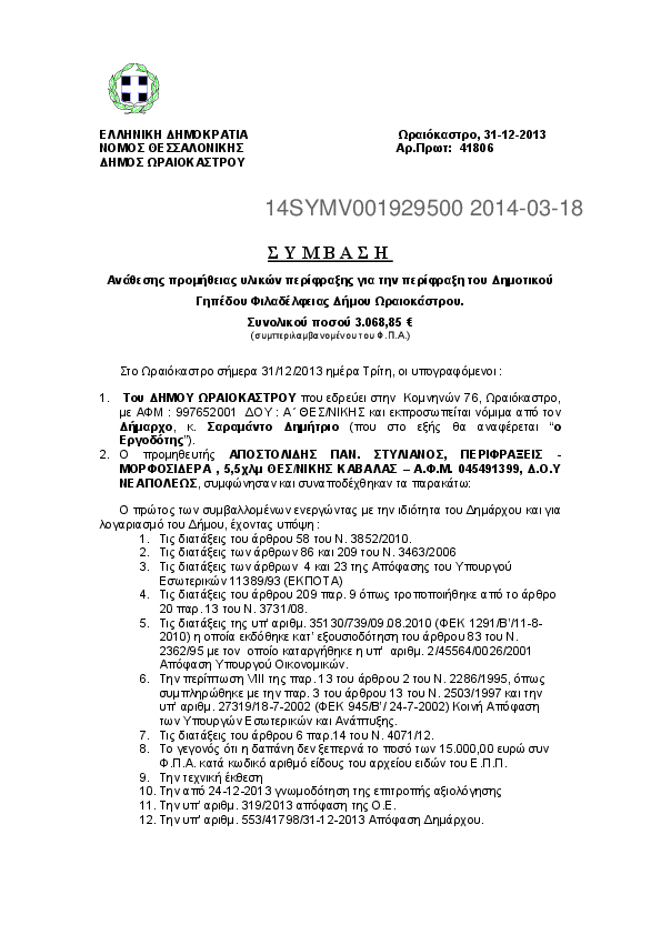 Αναζήτηση σε προκηρύξεις και συμβάσεις για:
