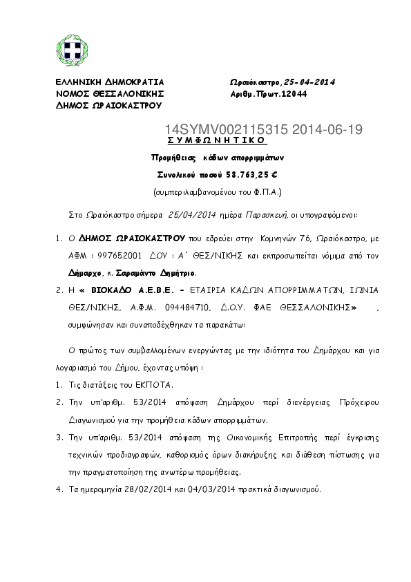 10. ΣΥΜΒΑΣΗ ΠΡΟΜΗΘΕΙΑΣ ΚΑΔΩΝ ΑΠΟΡΡΙΜΜΑΤΩΝ