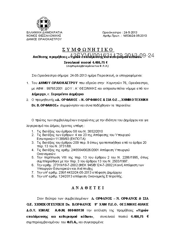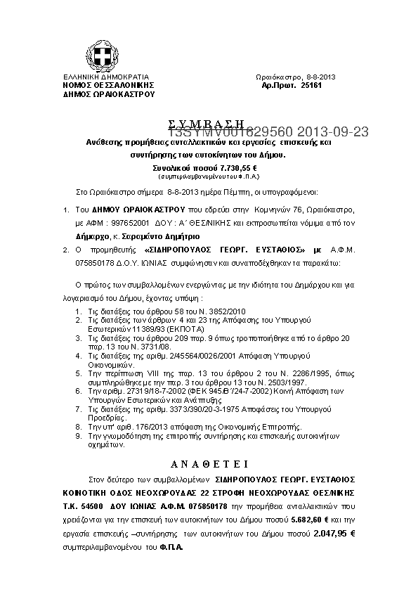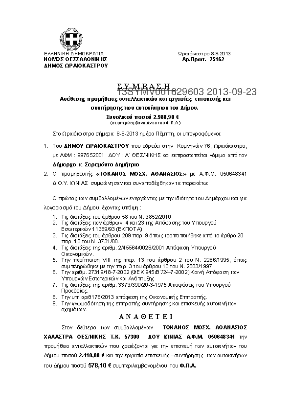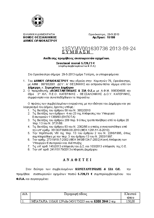 5. ΑΝΑΘΕΣΗ ΠΡΟΜΗΘΕΙΑΣ ΑΝΤΑΛΛΑΚΤΙΚΩΝ ΚΑΙ ΕΡΓΑΣΙΑΣ ΕΠΙΣΚΕΥΗΣ ΚΑΙ ΣΥΝΤΗΡΗΣΗ ΑΥΤΟΚΙΝΗΤΩΝ ΤΟΥ ΔΗΜΟΥ