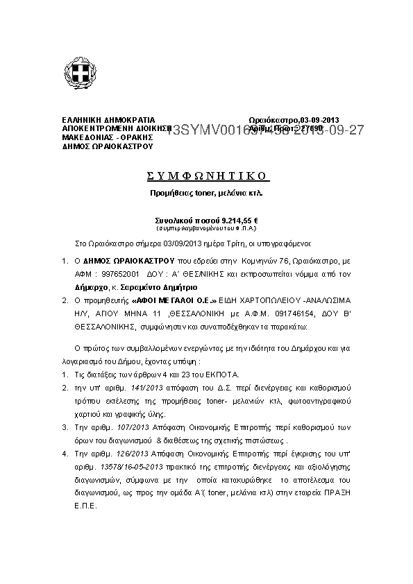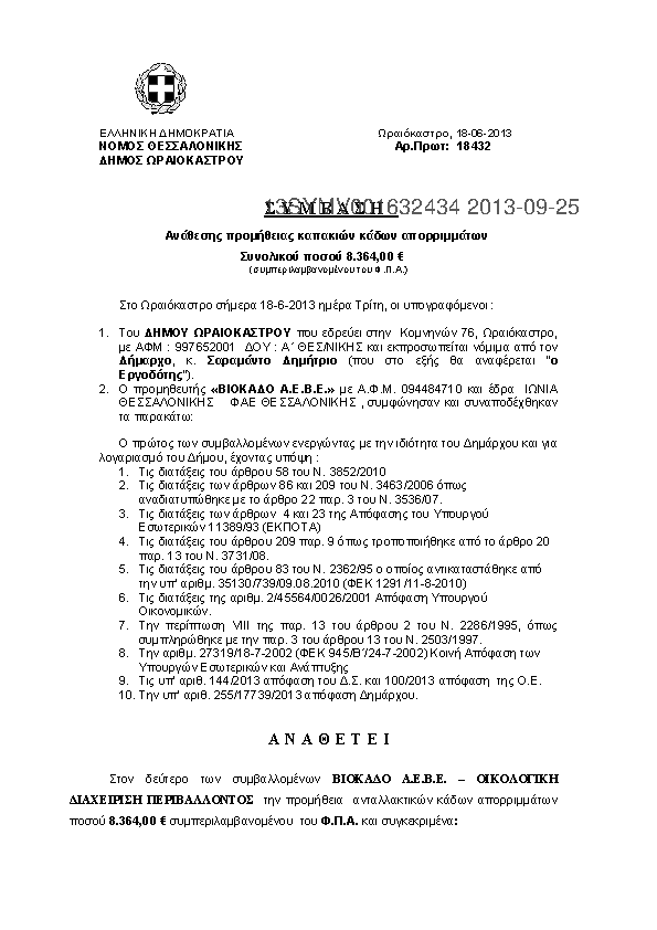9. ΑΝΑΘΕΣΗ ΠΡΟΜΗΘΕΙΑΣ ΚΑΠΑΚΙΩΝ ΚΑΔΩΝ ΑΠΟΡΡΙΜΜΑΤΩΝ