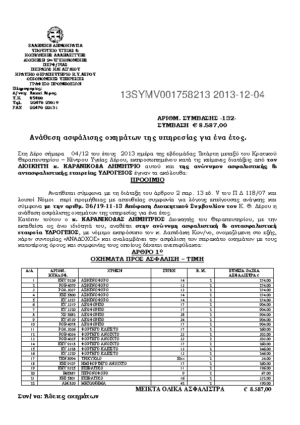 10. ΣΥΜΒΑΣΗ ΑΝΑΘΕΣΗΣ ΑΣΦΑΛΙΣΗΣ ΟΧΗΜΑΤΩΝ ΤΗΣ ΥΠΗΡΕΣΙΑΣ ΓΙΑ ΕΝΑ ΕΤΟΣ