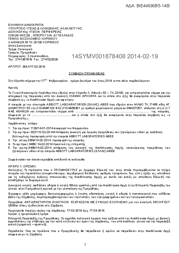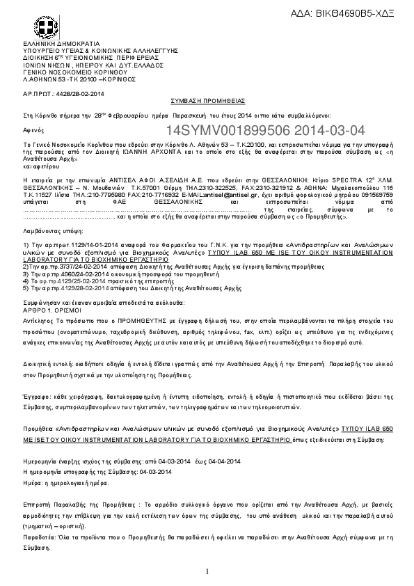 8. Δ Ι Α Κ Η Ρ Υ Ξ Η ΥΠ.ΑΡ.12/2014 Πρόχειρου Διαγωνισμού για Αναλώσιμα Αιματολογικά Προϊόντα ( Φιλτρα