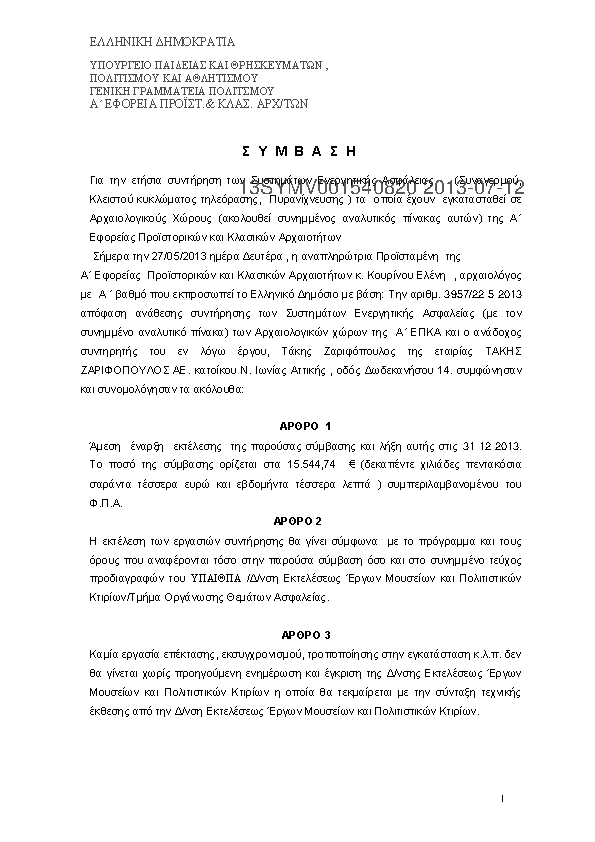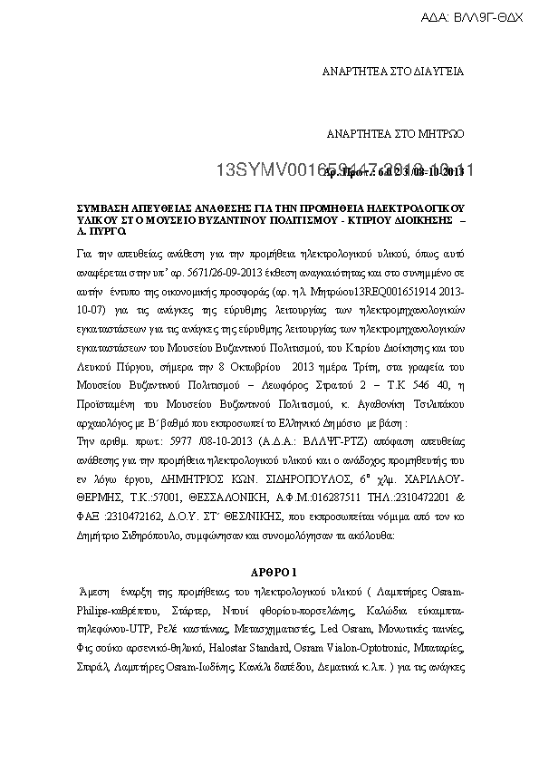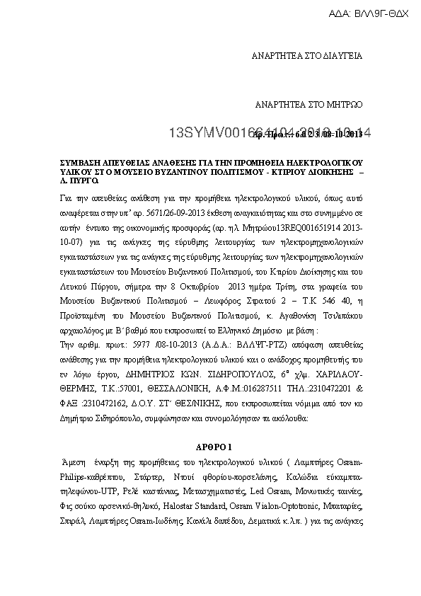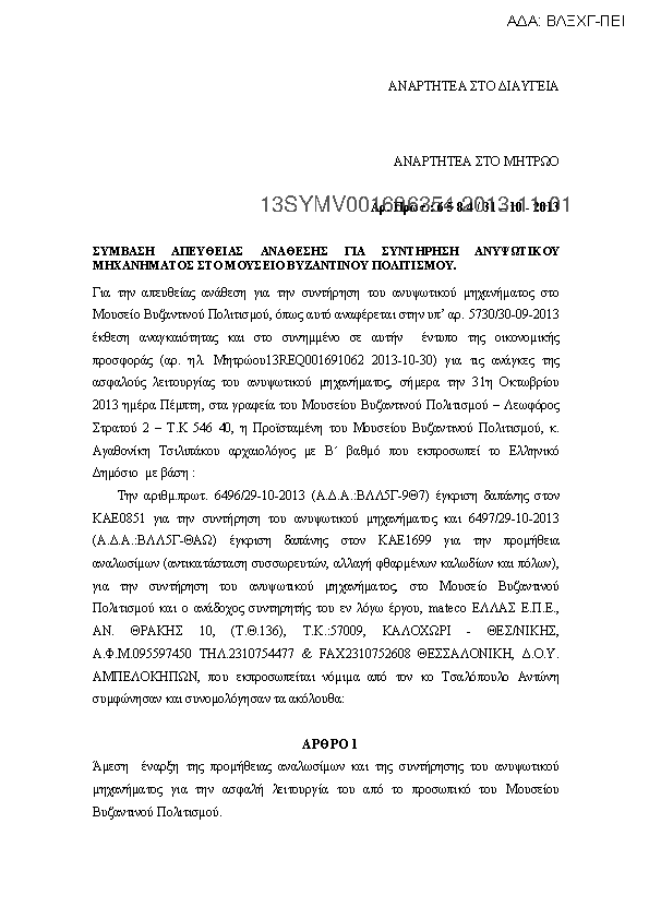 2. ΣΥΜΒΑΣΗ ΑΠΕΥΘΕΙΑΣ ΑΝΑΘΕΣΗΣ ΓΙΑ ΣΥΝΤΗΡΗΣΗ ΑΝΥΨΩΤΙΚΟΥ ΜΗΧΑΝΗΜΑΤΟΣ ΣΤΟ ΜΟΥΣΕΙΟ ΒΥΖΑΝΤΙΝΟΥ ΠΟΛΙΤΙΣΜΟΥ.