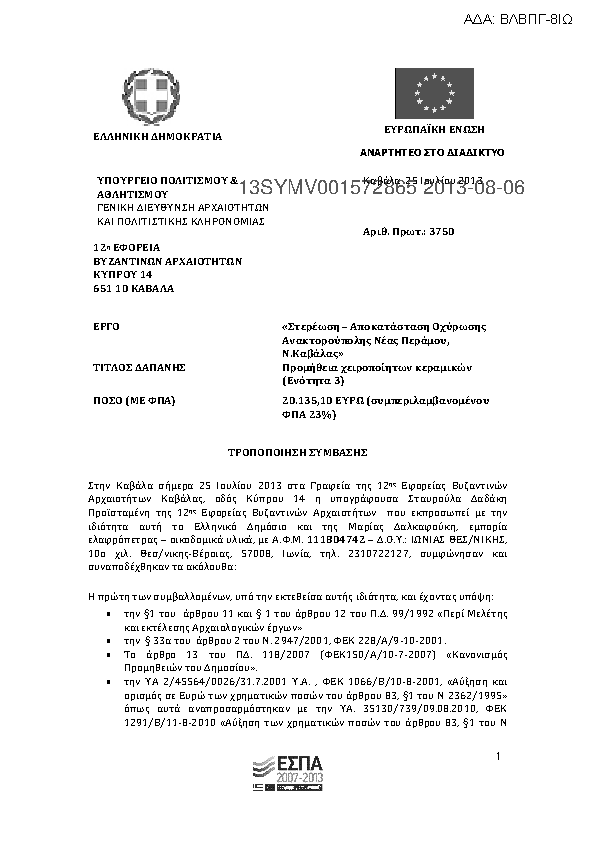 7. Προμήθεια χειροποίητων κεραμικών,έργο ΕΣΠΑ "Ανακτορούπολη Ν.Περάμου Καβάλας".