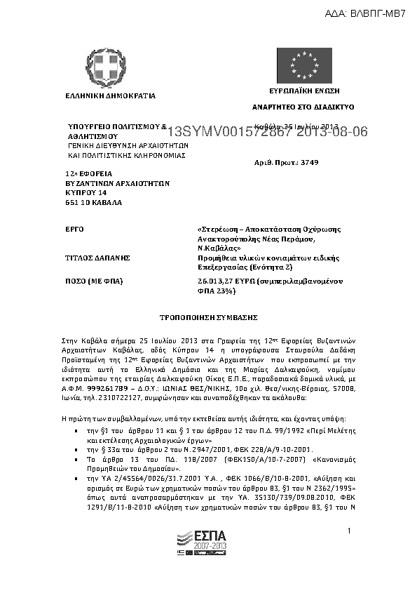 6. Προμήθεια υλικών κονιαμάτων ειδικής επεξεργασίας,έργο ΕΣΠΑ "Ανακτορούπολη Ν.Περάμου Καβάλας".