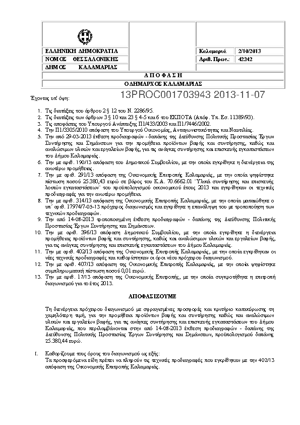 7. ΣΥΜΒΑΣΗ ΑΝΑΘΕΣΗΣ ΠΡΟΜΗΘΕΙΑΣ ΗΛΕΚΤΡΟΛΟΓΙΚΩΝ ΥΛΙΚΩΝ ΓΙΑ ΤΟΝ ΔΗΜΟ ΚΑΛΑΜΑΡΙΑΣ
