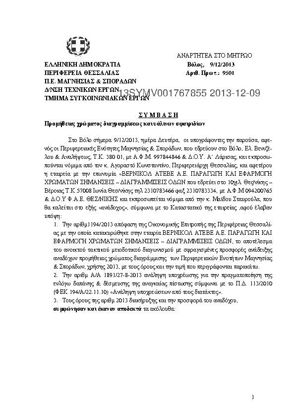 1. Προμήθεια χρώματος διαγραμμίσεως και υάλινων σφαιριδίων