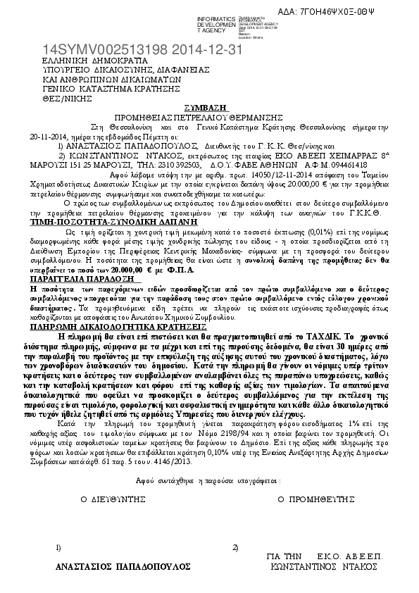 7. ΣΥΜΒΑΣΗ ΤΟΥ Γ.Κ.Κ.Θ. ΚΑΙ ΕΤΑΙΡΙΑΣ ΕΚΟ ΑΒΕΕΠ ΓΙΑ ΠΡΟΜΗΘΕΙΑ ΠΕΤΡΕΛΑΙΟΥ ΘΕΡΜΑΝΣΗΣ ΑΠΟ ΤΑΧΔΙΚ