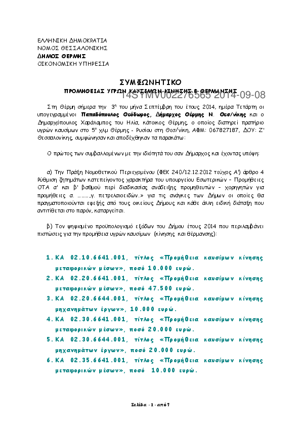 7. ΠΡΟΜΗΘΕΙΑ ΥΓΡΩΝ ΚΑΥΣΙΜΩΝ ΓΙΑ ΤΙΣ ΑΝΑΓΚΕΣ ΤΗΣ Α/ΘΜΙΑΣ ΚΑΙ Β/ΘΜΙΑΣ ΣΧΟΛΙΚΗΣ ΕΠΙΤΡΟΠΗΣ ΔΗΜΟΥ ΘΕΡΜΗΣ