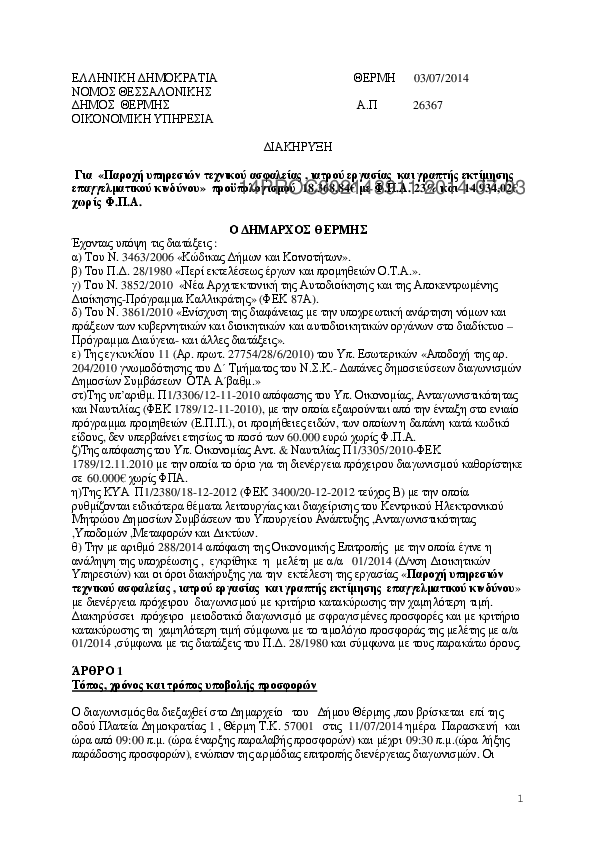 Αναζήτηση σε προκηρύξεις και συμβάσεις για: