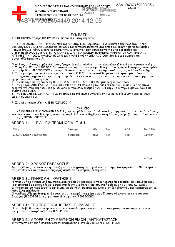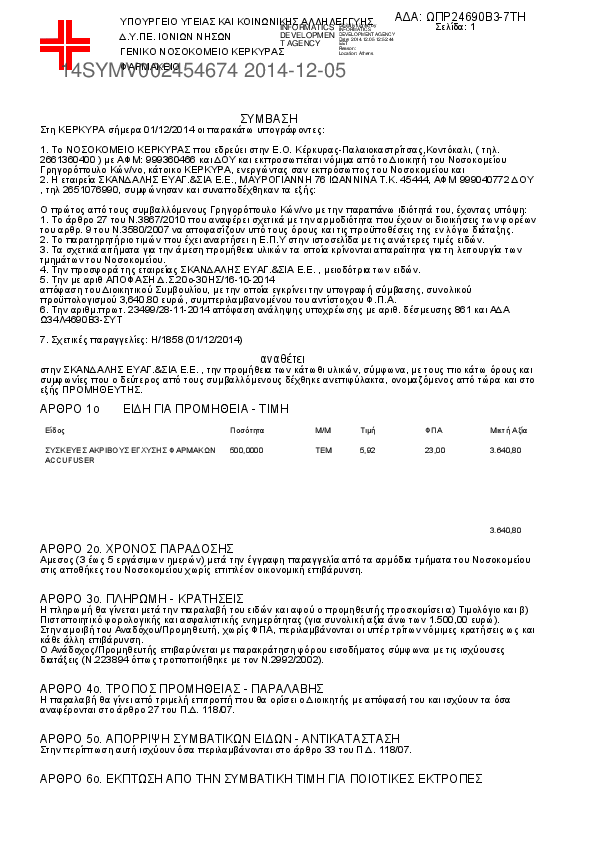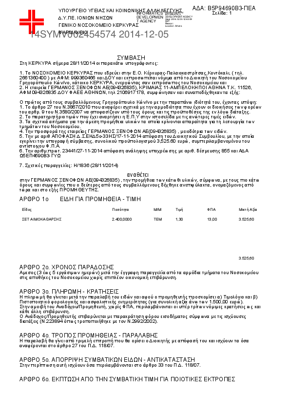 5. ΣΥΜΒΑΣΗ ΠΡΟΜΗΘΕΙΑΣ ΥΓΕΙΟΝΟΜΙΚΟΥ ΥΛΙΚΟΥ