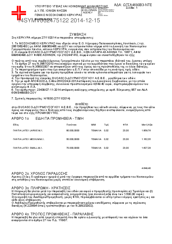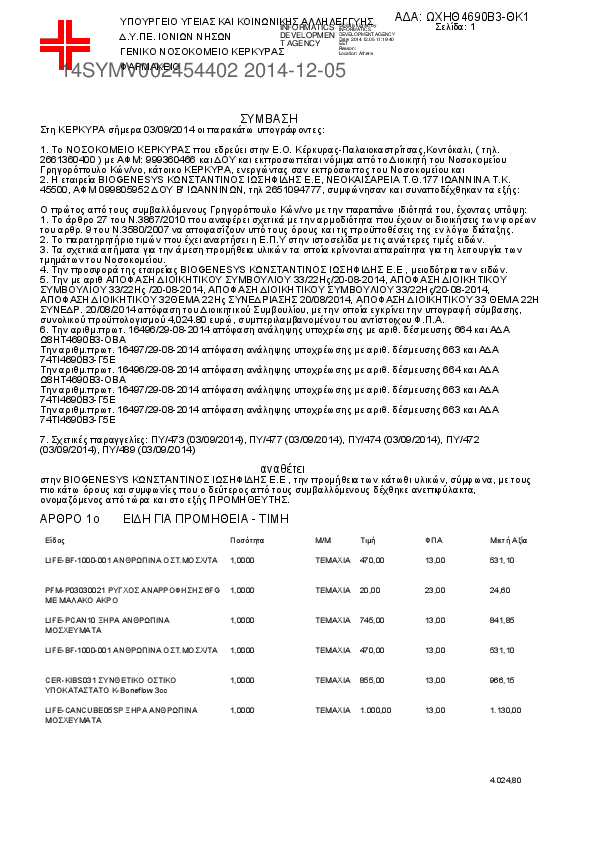 1. ΣΥΜΒΑΣΗ ΠΡΟΜΗΘΕΙΑΣ ΥΓΕΙΟΝΟΜΙΚΟΥ ΥΛΙΚΟΥ