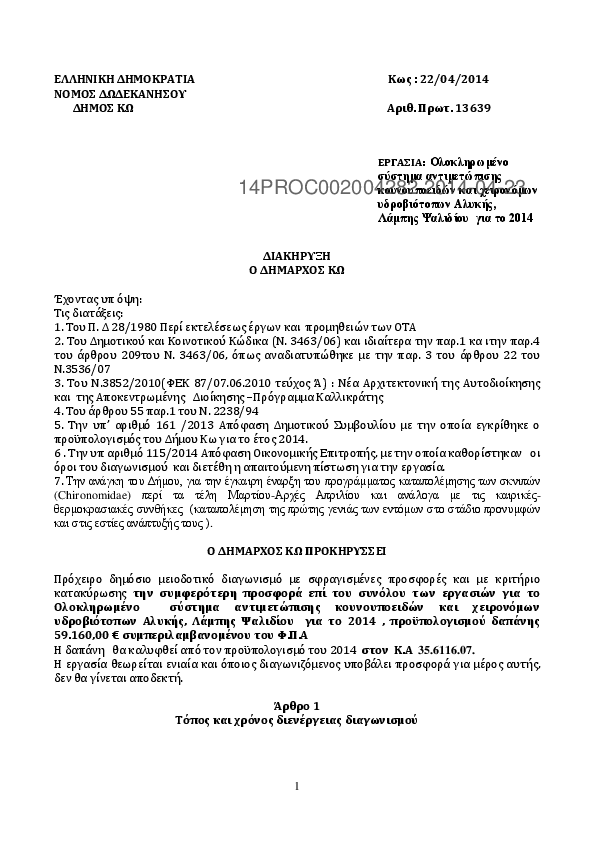 Αναζήτηση σε προκηρύξεις και συμβάσεις για: