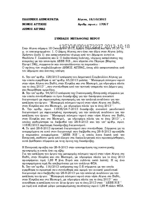 6. ΣΥΜΒΑΣΗ ΝΕΡΟΥ 2014 ΑΙΓΙΝΑ ΝΕ ΑΠΕΥΘΕΙΑΣ ΔΕΥΤΕΡΗ ΜΕ ΠΡΟΣΥΜΒΑΤΙΚΟ