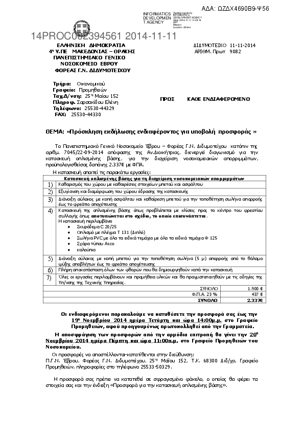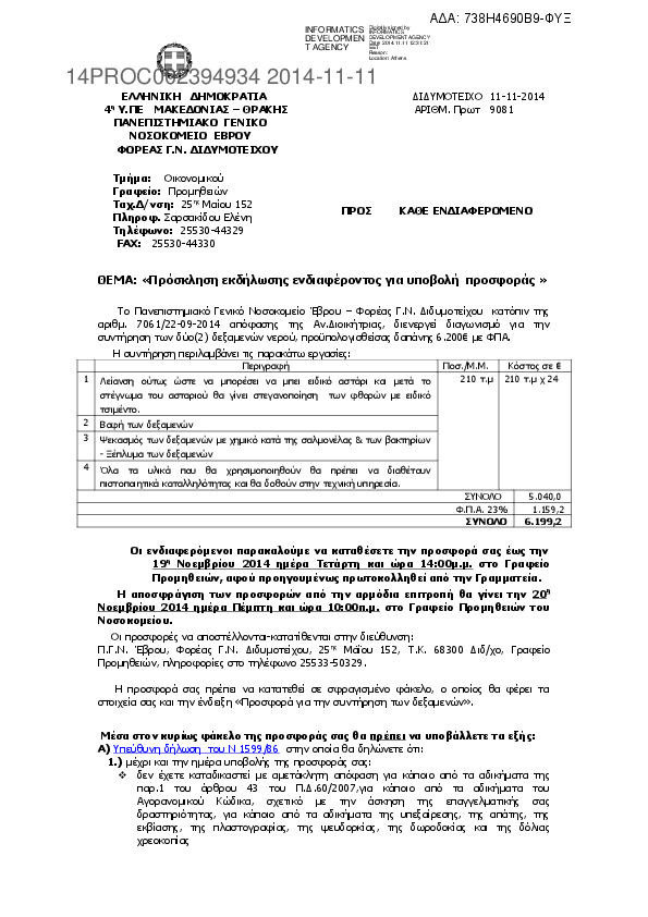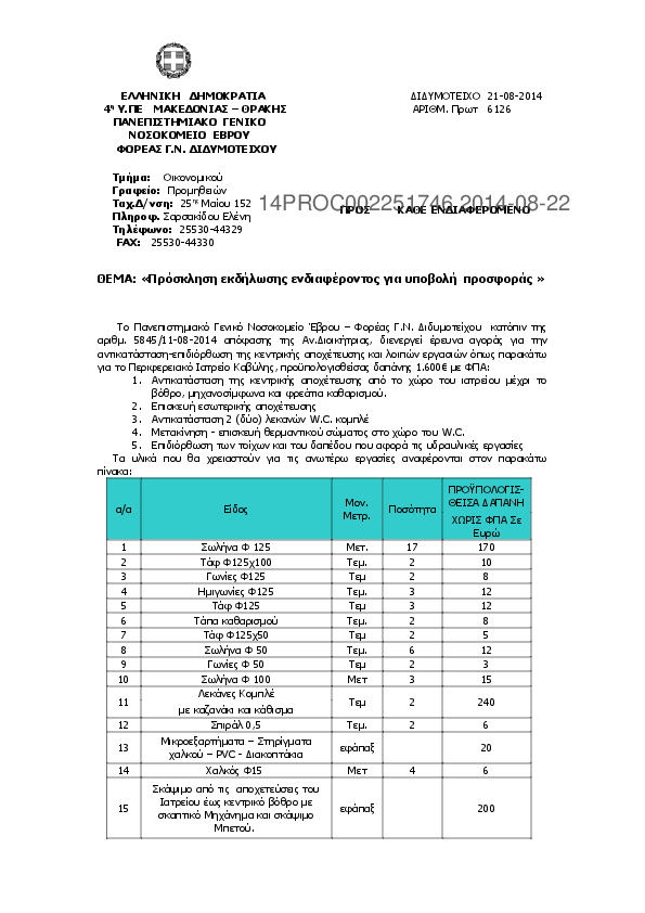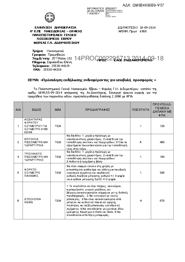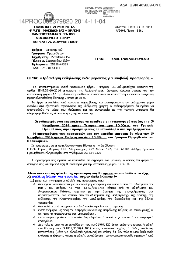 Αναζήτηση σε προκηρύξεις και συμβάσεις για: