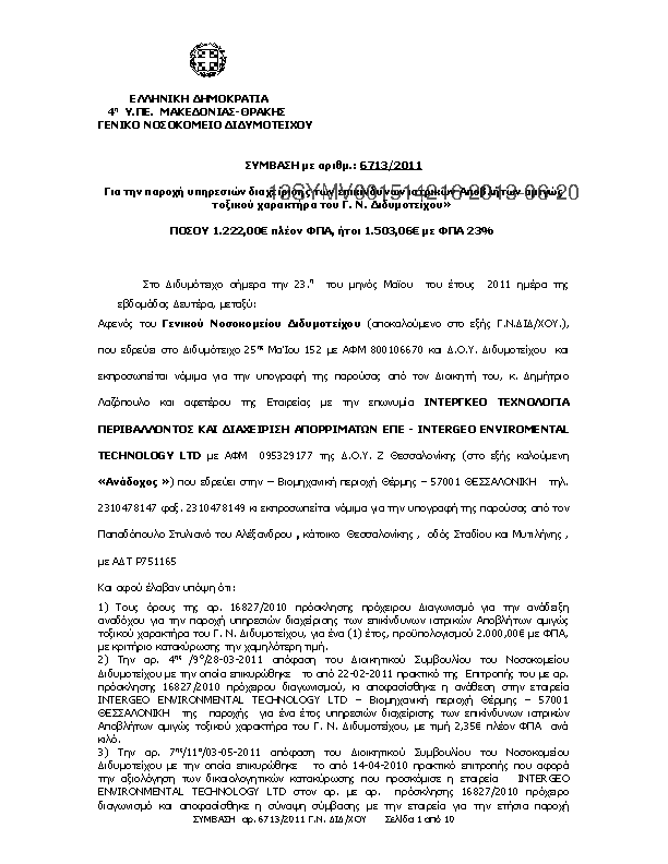 1. ΣΥΜΒΑΣΗ ΠΑΡΟΧΗΣ ΥΠΗΡΕΣΙΩΝ ΔΙΑΧΕΙΡΗΣΗΣ ΕΠΙΚΙΝΔΥΝΩΝ ΙΑΤΡΙΚΩΝ ΑΠΟΒΛΗΤΩΝ