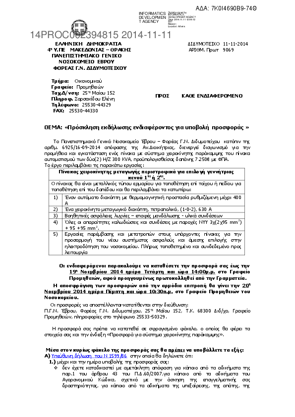 Αναζήτηση στο ΚΗΜΔΗΣ