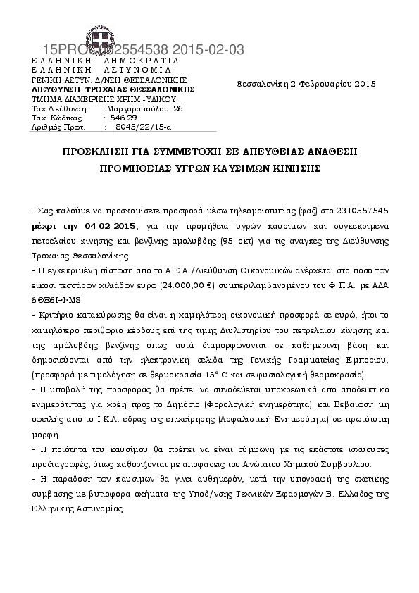 Αναζήτηση σε προκηρύξεις και συμβάσεις για:  Οικονομική