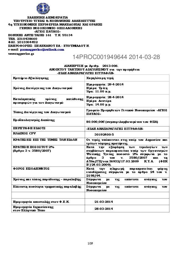 Αναζήτηση σε προκηρύξεις και συμβάσεις για: