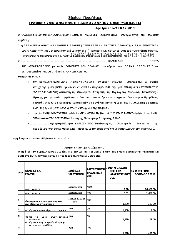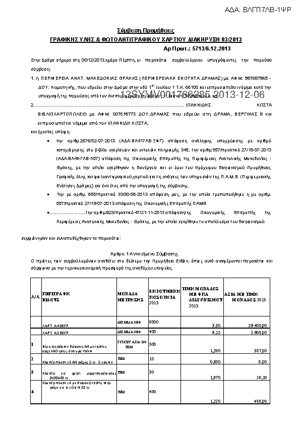7. ΣΥΜΒΑΣΗ ΠΡΟΜΗΘΕΙΑΣ ΓΡΑΦΙΚΗΣ ΥΛΗΣ ΚΑΙ ΦΩΤΟΑΝΤΙΓΡΑΦΙΚΟΥ ΧΑΡΤΙΟΥ ΔΙΑΚΗΡΥΞΗ 03/2013