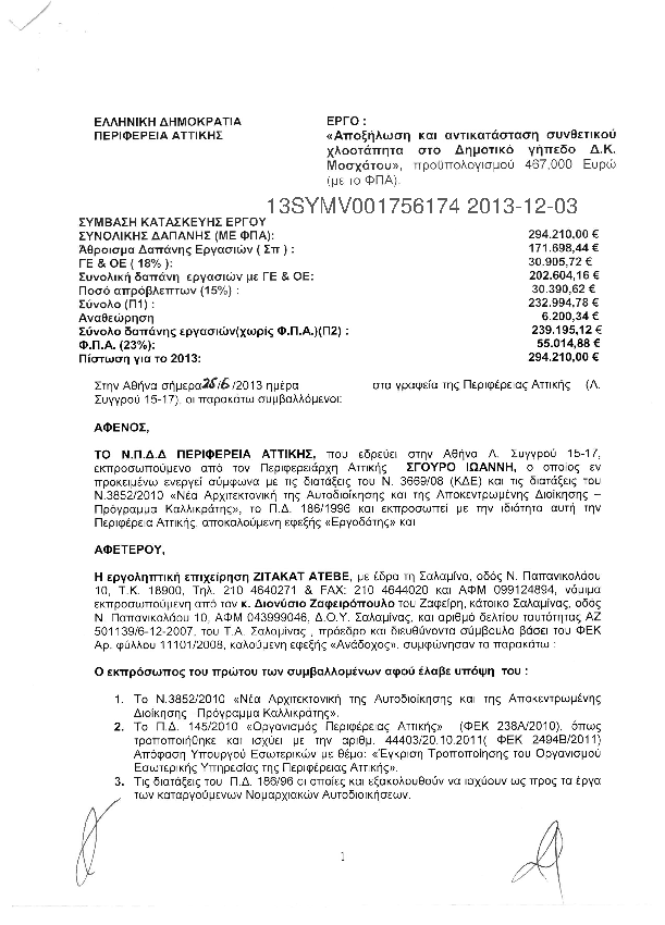 10. ΑΠΟΞΗΛΩΣΗ ΚΑΙ ΑΝΤΙΚΑΤΑΣΤΑΣΗ ΣΥΝΘΕΤΙΚΟΥ ΧΛΟΟΤΑΠΗΤΑ ΣΤΟ ΔΗΜΟΤΙΚΟ ΓΗΠΕΔΟ Δ.Κ. ΜΟΣΧΑΤΟΥ