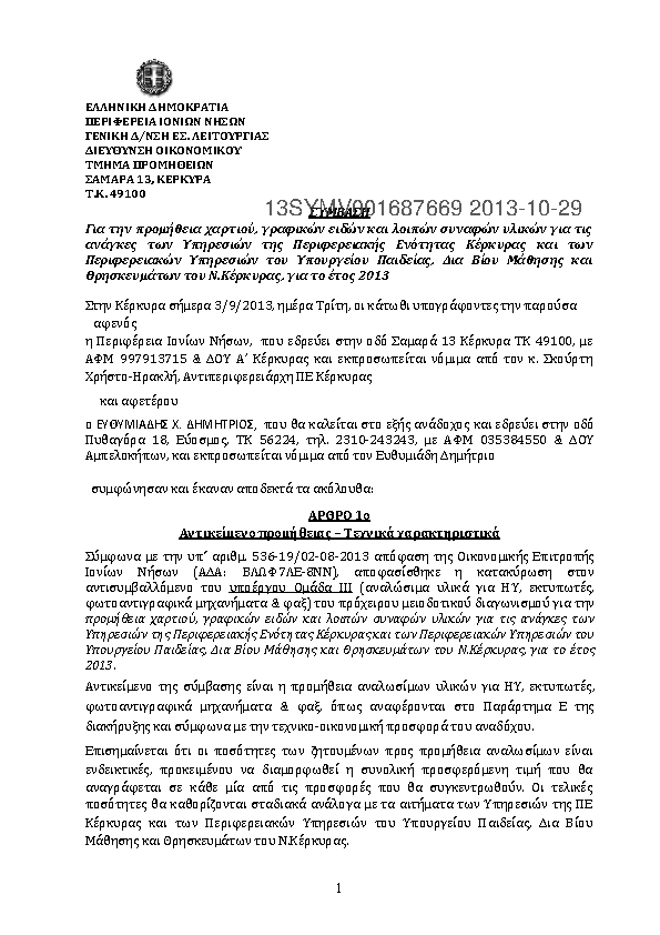 10. Προμήθεια αναλωσίμων ΗΥ για τις ανάγκες των Υπηρεσιών της ΠΕ Κέρκυρας για το έτος 2013