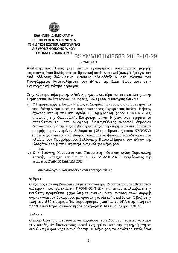9. Προμήθεια 5.350 λίτρων spinosad για τη δακοκτονία της ΠΕ Κέρκυρας 2013