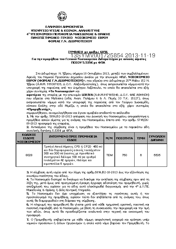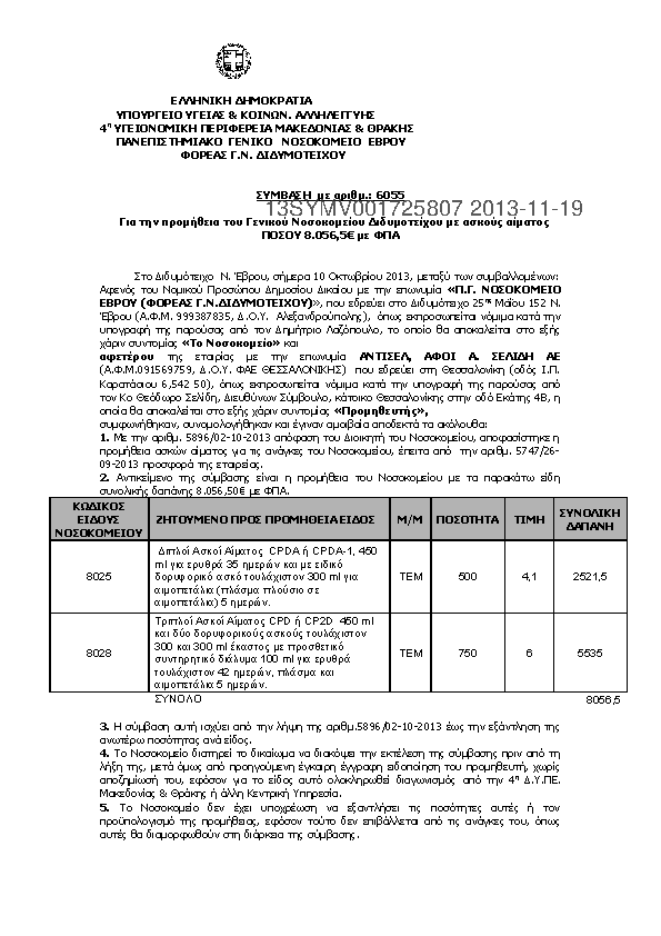 5. ΣΥΜΒΑΣΗ ΠΡΟΜΗΘΕΙΑΣ ΜΕ ΑΣΚΟΥΣ ΑΙΜΑΤΟΣ