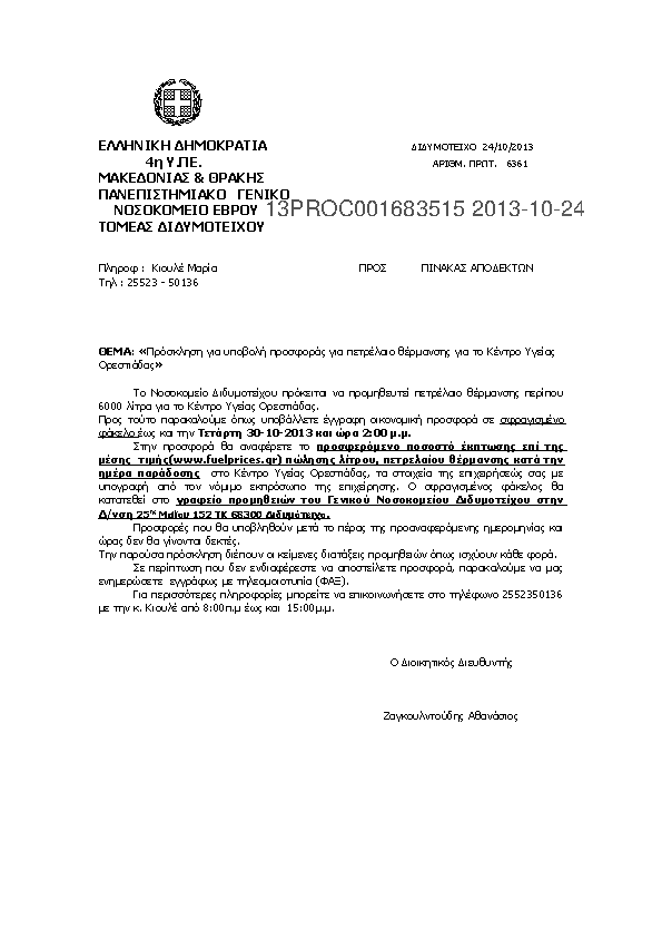 3. ΠΡΟΣΚΛΗΣΗ ΥΠΟΒΟΛΗΣ ΠΡΟΣΦΟΡΑΣ ΓΙΑ ΠΕΤΡΕΛΑΙΟ ΘΕΡΜΑΝΣΗΣ ΓΙΑ ΤΟ ΚΕΝΤΡΟ ΥΓΕΙΑΣ ΟΡΕΣΤΙΑΔΑΣ