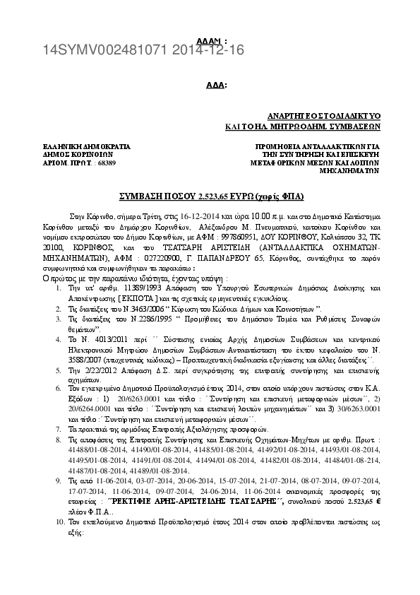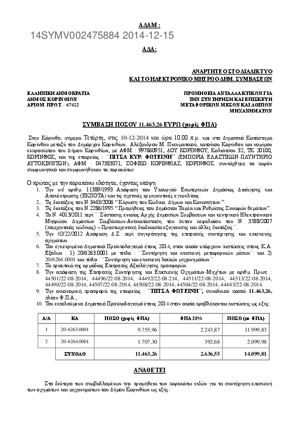 7. ΣΥΜΒΑΣΗ ΓΙΑ ΠΡΟΜΗΘΕΙΑ ΑΝΤΑΛΛΑΚΤΙΚΩΝ ΓΙΑ ΕΠΙΣΚΕΥΗ-ΣΥΝΤΗΡΗΣΗ ΟΧΗΜΑΤΩΝ ΔΗΜΟΥ