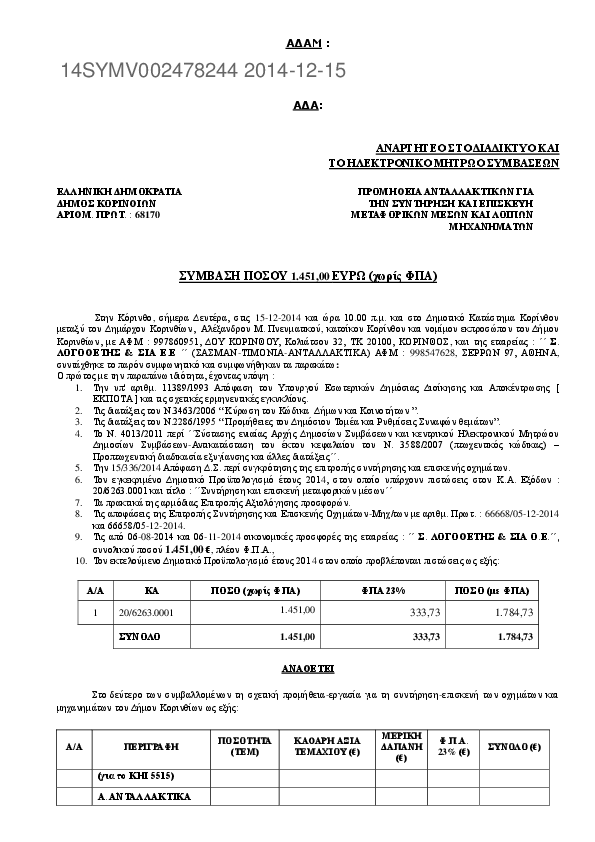 1. ΣΥΜΒΑΣΗ ΓΙΑ ΠΡΟΜΗΘΕΙΑ ΑΝΤΑΛΛΑΚΤΙΚΩΝ