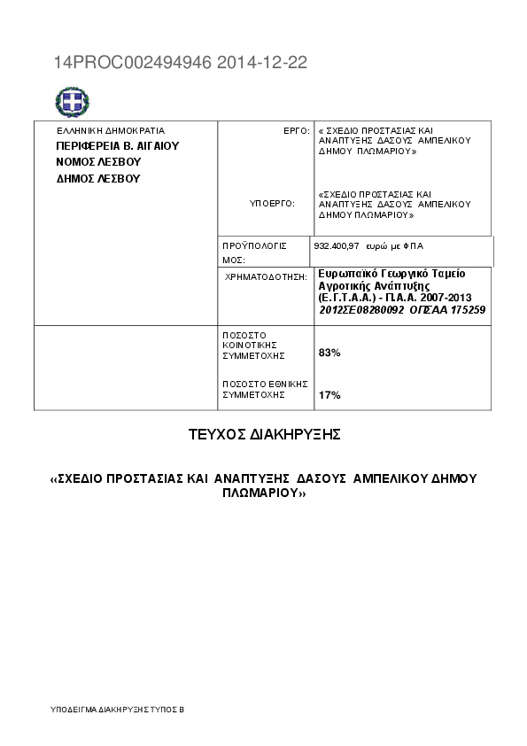 Αναζήτηση σε προκηρύξεις και συμβάσεις για: