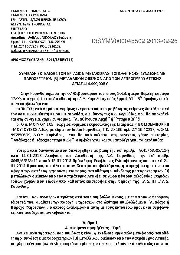 Αναζήτηση σε προκηρύξεις και συμβάσεις για: