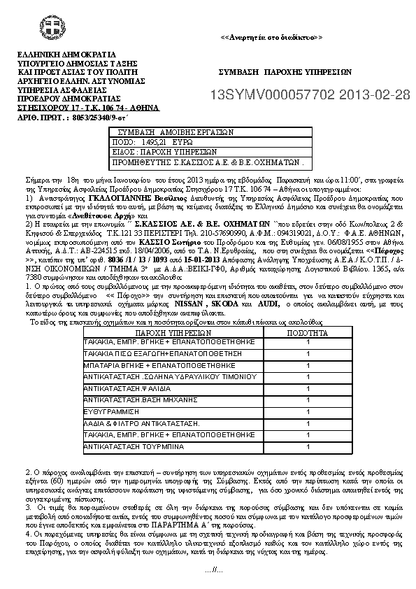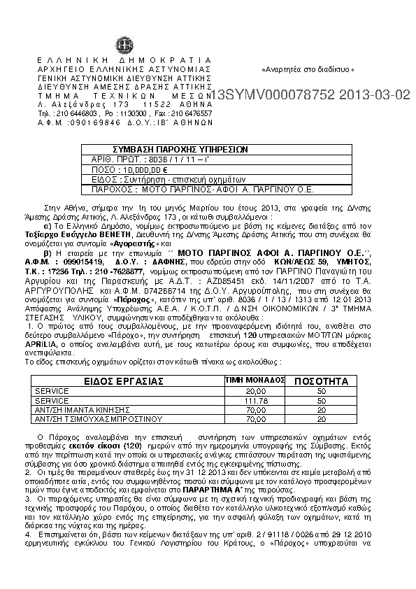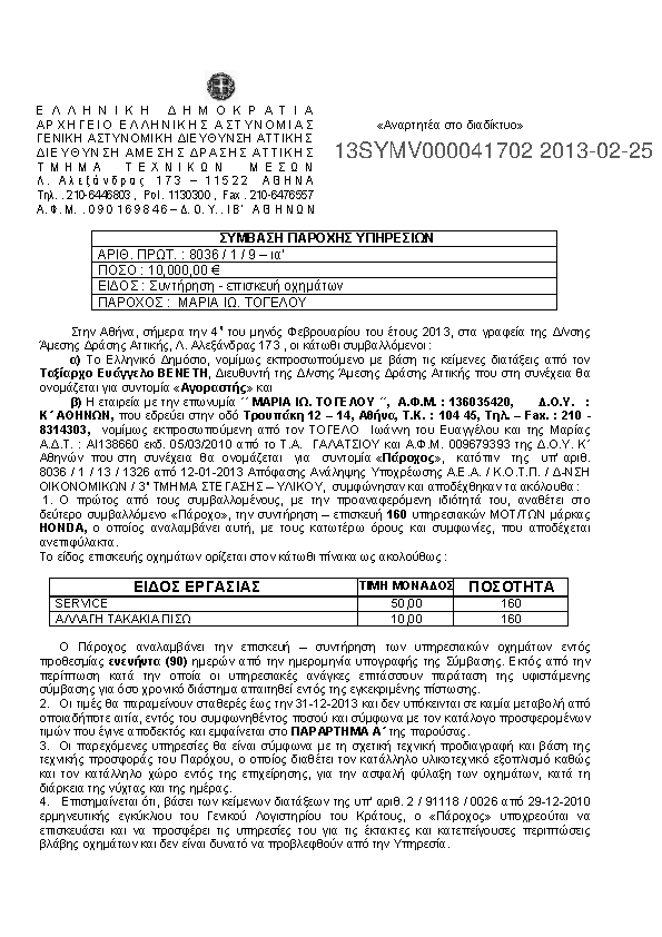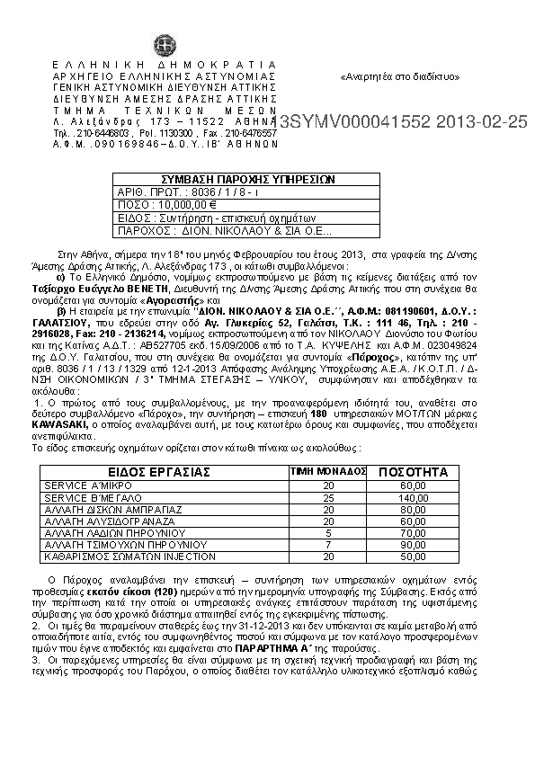 3. ΣΥΜΒΑΣΗ ΑΜΟΙΒΗΣ ΕΡΓΑΣΙΩΝ ΓΙΑ ΤΗΝ ΣΥΝΤΗΡΗΣΗ ΚΑΙ ΕΠΙΣΚΕΥΗ ΑΥΤΟΚΙΝΗΤΩΝ