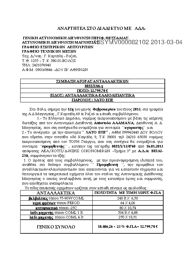 6. ΣΥΜΒΑΣΑ ΠΡΟΜΗΘΕΙΑΣ ΕΛΑΙΟΛΙΠΑΝΤΙΚΩΝ ΓΙΑ ΤΙΣ ΑΝΑΓΚΕΣ ΤΩΝ ΥΠΗΡΕΣΙΑΚΏΝ ΟΧΗΜΑΤΩΝ ΤΗΣ Α.Δ ΜΑΓΝΗΣΙΑΣ