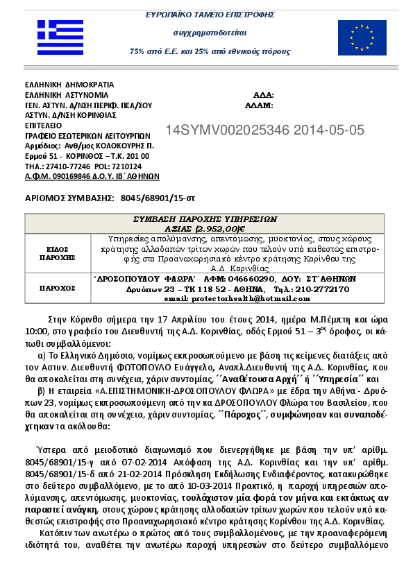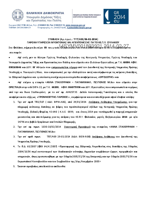 7. ΣΥΜΒΑΣΗ ΠΑΡΟΧΗΣ ΥΠΗΡΕΣΙΩΝ ΜΥΟΚΤΟΝΙΑΣ ΓΙΑ ΤΟ ΚΕΠΥ ΦΥΛΑΚΙΟΥ