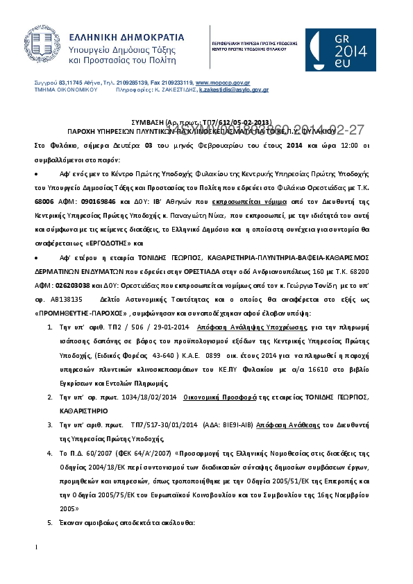 8. ΣΥΜΒΑΣΗ ΠΑΡΟΧΗΣ ΥΠΗΡΑΣΙΩΝ ΠΛΥΝΤΙΚΩΝ ΓΙΑ ΤΟ ΚΕΠΥ ΦΥΛΑΚΙΟΥ