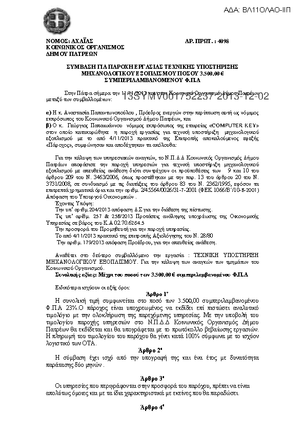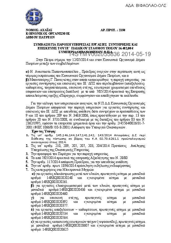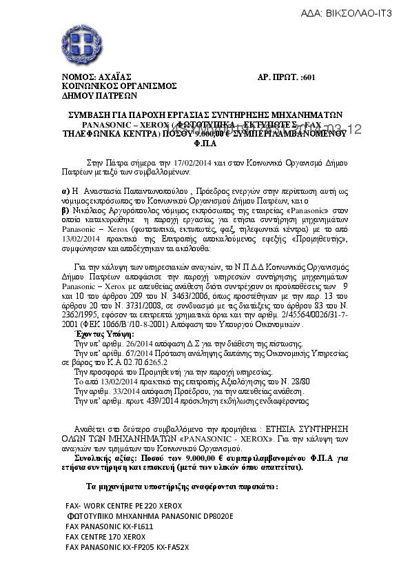 5. ΣΥΜΒΑΣΗ ΠΑΡΟΧΗΣ ΥΠΗΡΕΣΙΩΝ ΓΙΑ ΣΥΝΤΗΡΗΣΗ ΚΑΙ ΕΠΙΣΚΕΥΗ ΦΩΤΟΤΥΠΙΚΩΝ - ΦΑΞ - ΤΗΛ. ΚΕΝΤΡΩΝ