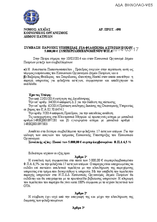 6. ΣΥΜΒΑΣΗ ΓΙΑ ΠΑΡΟΧΗ ΥΠΗΡΕΣΙΑΣ ΓΙΑ ΦΙΛΟΞΕΝΙΑ ΑΣΤΕΓΩΝ