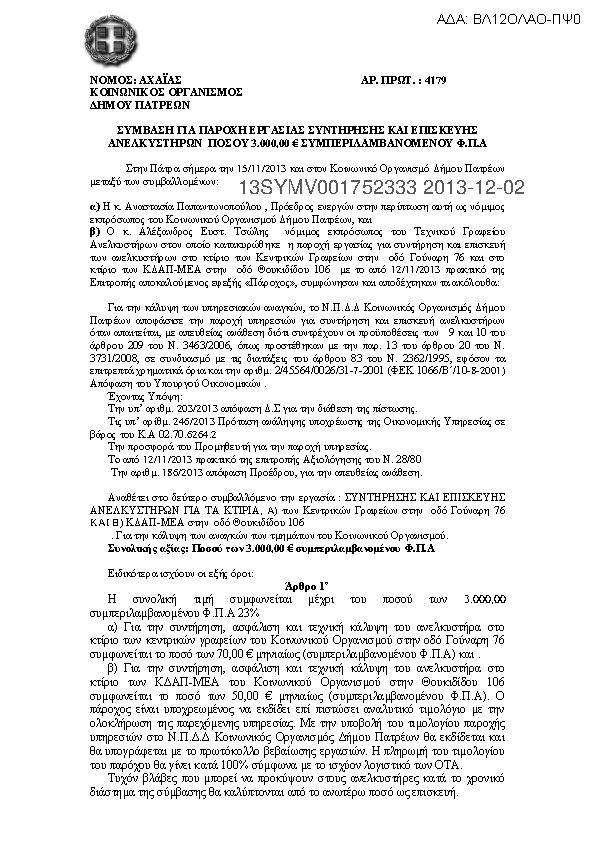 1. ΣΥΜΒΑΣΗ ΓΙΑ ΣΥΝΤΗΡΗΣΗ ΚΑΙ ΕΠΙΣΚΕΥΗ ΑΝΕΛΚΥΣΤΗΡΩΝ